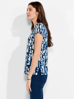 NZT Dotty Lines Short Sleeve Crew Assymetrical Tee BLUE MULTI