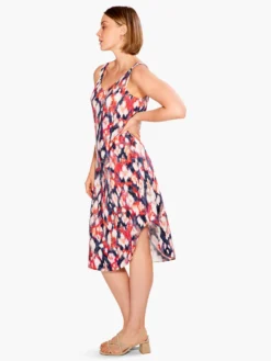 A woven sheath dress with the comfort and solid construction that matches the eye-catching pattern. Pull on with a V-neck and a sleeveless silhouette that makes it a great underlayer for your favorite cardigan. With on seam pockets and a hem that’s designed to fall below the knee. Mindfully Made from EcoVero viscose.