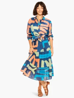 WeÂ’re all about conversational prints, but actual words might be a NIC+ZOE first. Made from 100% cotton, this tiered skirt has fun with a brushstroke effect print that spells out exactly how we feel about dress season. Sits at the waist and falls below the knee. Includes a light lining.