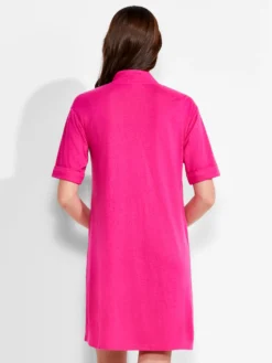 NZT Short Sleeve Notched V Dress SHOCKING PINK