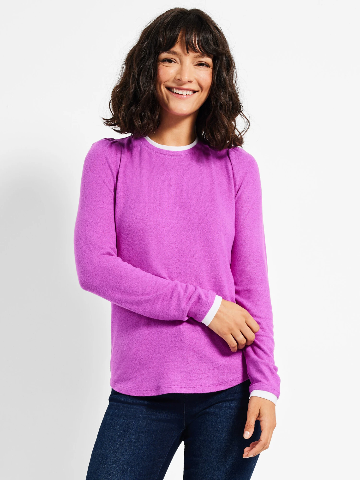 Made from our fan-favorite Sweet Dreams fabric with a dreamily soft feel, this detail driven top is as stylish as it is easy. Faux double layers at the neck and sleeve openings create contrast while the namesake gathered sleeves add a unique shape to even the most casual of looks. With just a touch of stretch woven in to keep things bouncy and light.