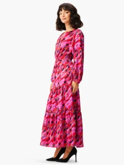 Our print of the season steps out from head-to-toe in this easy-fitting pullover dress. A satin chiffon fabric adds texture that compliments the print and keeps you comfortable all day long, and the long sleeves and maxi silo add coverage ready for any time of year. The split neck and fit and flare shaping complete the look, while side seam pockets are an always welcome addition.