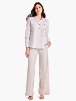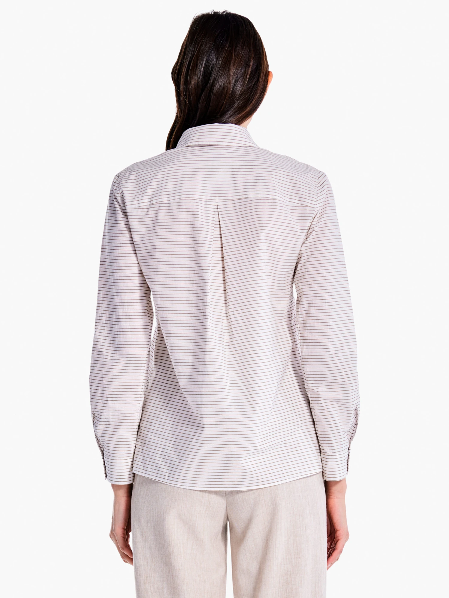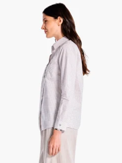 Crisp yet comfy, this understated statement maker is a beautiful yarn dyed construction that plays with classic stripes. Featuring chest pockets with placed vertical stripes to add interest to the pattern. a classic button-down silhouette designed for a regular fit with a hem that sits below the waist: style it for tucked or let it flow. Made from 100% cotton.