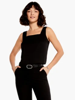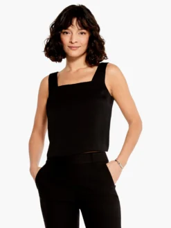 With its silken feel, shorter-than-standard hem and a striking square neck silhouette, this tank proves that big things do come in small packages. Designed to be the perfect go-with for on-trend wide pants: make them denim to keep things casual or go with more elevated work ants to create a dressier look.